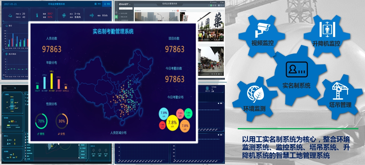 智慧工地管理系統(tǒng)以用工實(shí)名制為核心,利用新型物聯(lián)網(wǎng)和云計算技術(shù),將建筑項目施工現(xiàn)場的真實(shí)運(yùn)作數(shù)據(jù)進(jìn)行采集和匯總處理,以可視化的形式在平臺上進(jìn)行實(shí)時展現(xiàn)。